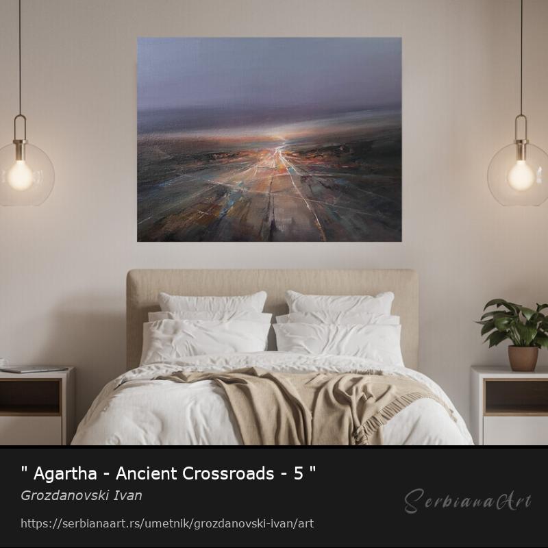 " Agartha - Ancient Crossroads - 5 " .....Painted with expressive moves.......with pallet knife and with a brush.....W 100 x H 80 cm ,( W 97 x H 77 cm ,when the canvas is stretched on the wooden frame )....