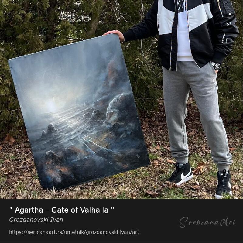 " Agartha - Gate of Valhalla " .....Painted with expressive moves.......with pallet knife and with a brush.....W 80 x H 100 cm ,( W 77 x H 97 cm ,when the canvas is stretched on the wooden frame )....