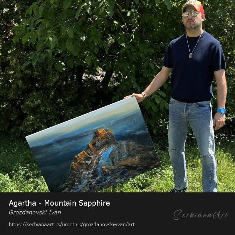 " Agartha - Mountain Sapphire ".....Painted with expressive moves.......with pallet knife and with a brush.....W 100 x H 70 cm ,( This art work is painted on professional 380 gram Italian canvas )