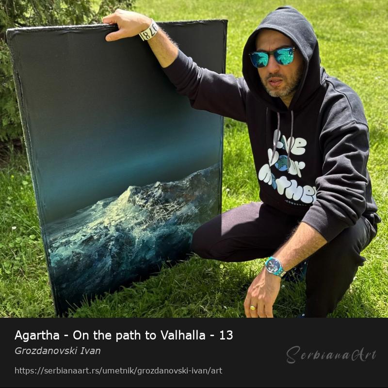 " Agartha - On the path to Valhalla - 13 ".....Painted with expressive moves.......with pallet knife and with a brush.....W 80 x H 100 cm ,( W 77 x H 97 cm ,when the canvas is stretched on the wooden frame )....