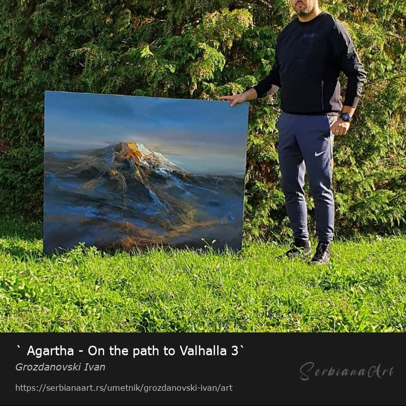 Original artwork description: " Agartha - On the path to Valhalla 3 "......Painted with expressive moves.......with pallet knife and with a brush.....W 125 x H 100 cm I'm giving all best, to be represent the true colors of the paintings in the photos, but sometimes you can see a little difference in tone.. I take good care packing my art, so it comes to you in the great shape. Note !!! The painting on the wall of the room is not in true scale....!!!! All my artwork is original !!! Materials used: Acrylic ( Liquitex) ...... quartz sand, .. on the end covered with a satin coat of varnish, to protect it for the UV and dust.Podelite i promovišite ovo delo