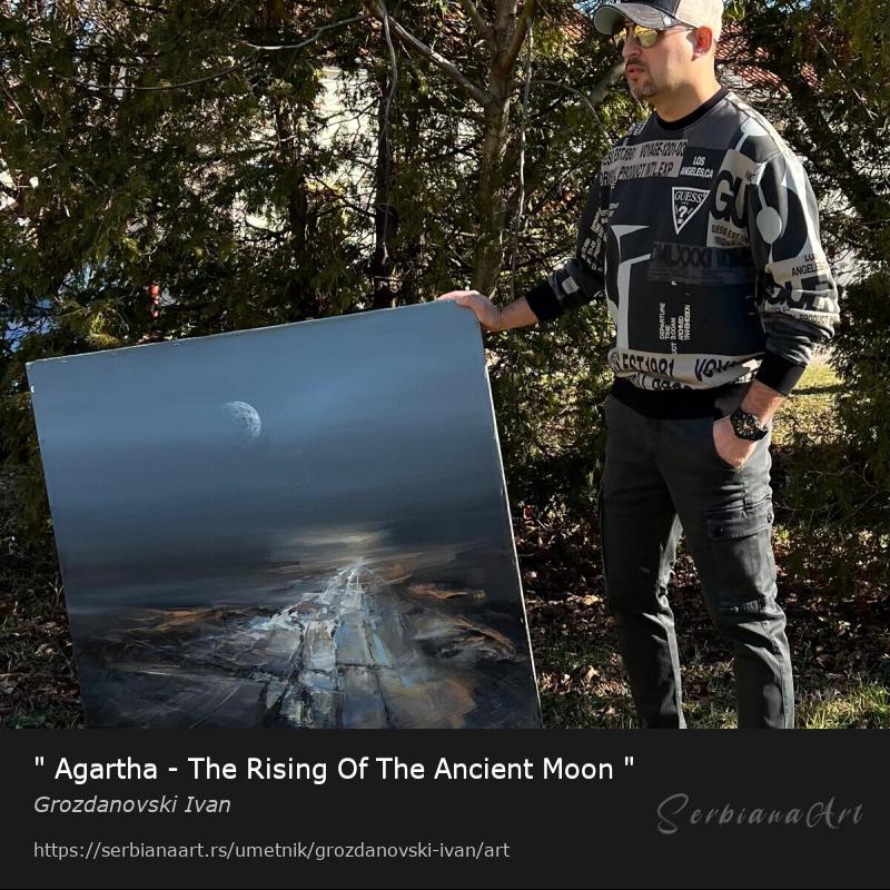 " Agartha - The Rising Of The Ancient Moon " .....Painted with expressive moves.......with pallet knife and with a brush.....W 100 x H 100 cm ,( W 97 x H 97 cm ,when the canvas is stretched on the wooden frame )....