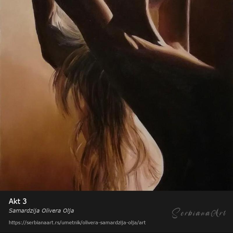 Zivim i radim u Novom Sadu. Studirala sam Gradjevinski fakultet, ali je slikanje oduvek bilo moj hobi, a aktivno slikam od 1995. godine. Imala sam tri samostalne izlozbe i ucestvovala sam na vise kolektivnih. Sve slike su radjene tehnikom ulje na platnu. Moje radove mozete videti na: olja-art.comSlike radim i po narudzbini, tako da mozete sami odabrati motiv i velicinu slike. Slike ne saljem u inostranstvo.Umetnik Samardzija Olivera Olja (Srbija).