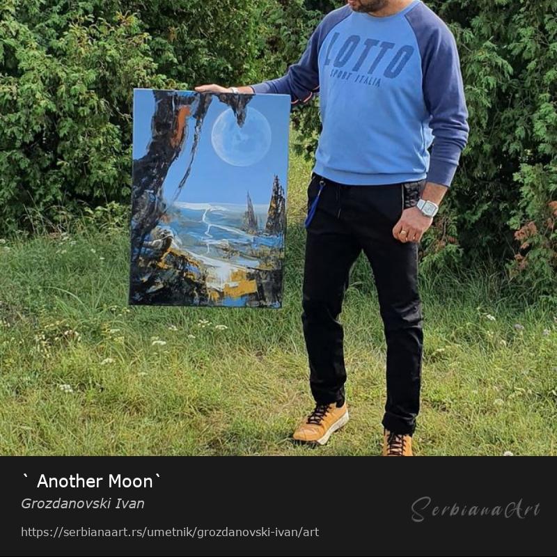 Artwork description: " Another Moon " ...Impressionistic style....... ....Painted with expressive moves...........with a lot of emotion!!!... SPECIAL PRICE!!! I'm giving all best, to be represent the true colors of the paintings in the photos, but sometimes you can see a little difference in tone.. I take good care packing my art,so it comes to you in the great shape. Note !!! The painting on the wall of the room is not in true scale....!!!! All my artwork is original !!!! Materials used: Acrylic ( Liquitex)..... on the end covered with a satin coat of varnish, to protect it for the UV and dustPodelite i promovišite ovo delo