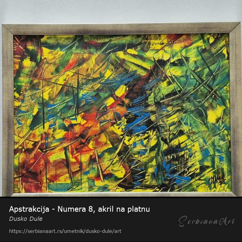 Slika Apstrakcija Numera 8, prelepo umetnicko delo. Tehnika akril na platnu. Dimenzije slike sa ramom 51 x 39. Privatna kolekcija.