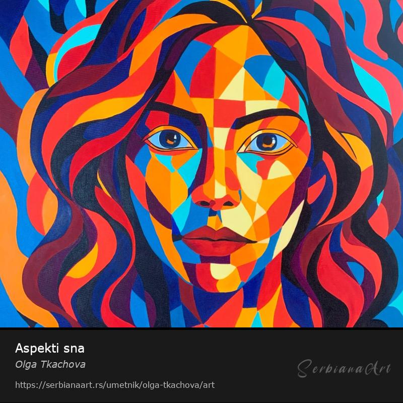 У овој живописној уљаној слици, преточила сам своју страст према геометријским облицима и живописним бојама у портрет који зрачи енергијом и емоцијама. Свака страна лица одражава сложеност и лепоту индивидуалности. Смела интеракција топлих и хладних тонова удише живот и покрет, позивајући ваш простор да пулсира креативношћу и смелим изразом. Ово дело уноси инспиративну, динамичну енергију у сваку просторију.