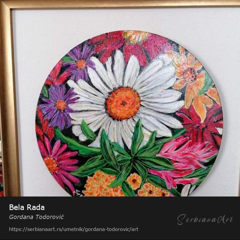 Slika je originalna sa inspracijom cveca u mojoj basti.Radjena akrilikom kruznog oblika na platnu koje je na kartonu kasirano i lepim ramom.Osvezice vas prostor sa dobrom energijom.Na dm .slike se dodaje sirina rama.Kontakt na email:gordana.todorovic47@gmail.com ili telefonom + 38163344652.