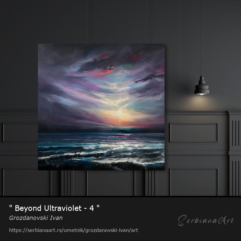 " Beyond Ultraviolet - 4 ".....Painted with expressive moves.......with pallet knife and with a brush.....W 100 x H 100 cm ,( W 95 x H 95 cm ),when the canvas is stretched on the wooden frame )....