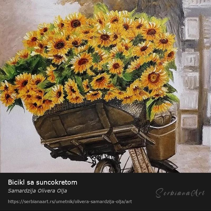 Bicikl sa suncokretom, ulje na platnu 40x60cm