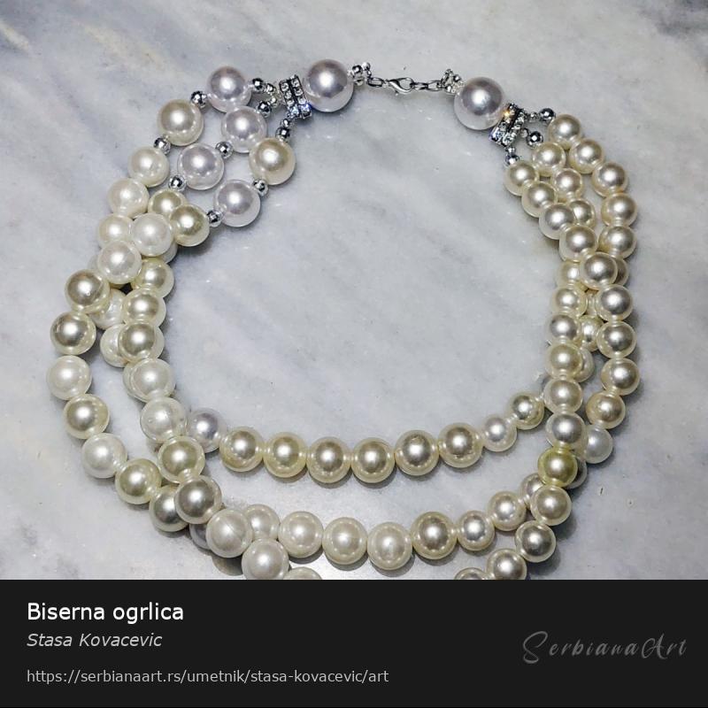 Ručno izrađena ogrlica od bisera sa cirkonima i kopča od nerđajućeg čelika.
