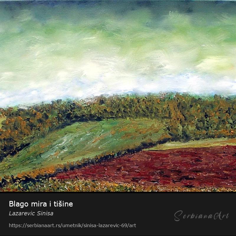 "Miri i tišina"ulje na platnu dimenzija 60x40cm prikazuje miran pejzaž pun zelenila i tišine.Želeo sam da prenese smirenost i spokojstvo ovog prizora,te Vas pozivam da se prepustite trenutku i uživate u tišini koja vas okružuje.Ovo delo je savršeno za one koji žele da pronađu malo mira u svom životu ili žele da unesu tu harmoniju u svoj prostor.Sliku možete pronaći na našem sajtu www.sinisalart.rs i uživati u njenim detaljima koji će vas sigurno očarati.