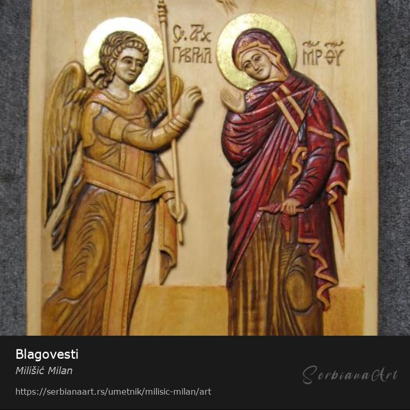 Korišćen materijal ; drvo topola, tonirano orahovim i bajcom od višnje, pozlaceno 23 karatnim zlatom.Podelite i promovišite ovo delo