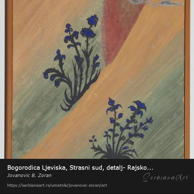 Crkva Bogorodice Ljeviške u Prizrenu (1309-1313.god.), kompozicija - Strašni sud, detalj: Rajsko cveće, kopija freske. Ova kopija freske je u posedu autora, a rok za izradu iste je po dogovoru (oko 10 dana).