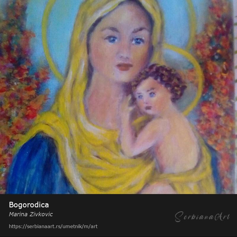 Slika Bogorodica sa malim Hristom radjena uljem na pepariranom platnu