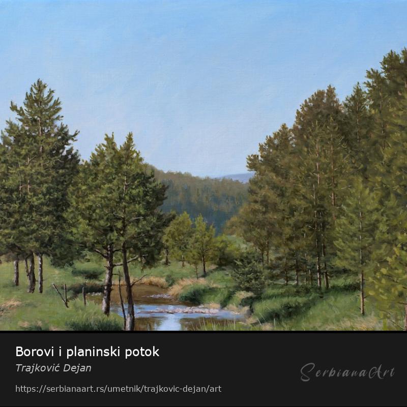Scena sa planine Zlatibor i reka Rzav koja protiče kroz nju, na ovom delu toka još uvek kao potok, hladan i čist. Originalna slika, slikana najkvalitetnijim Schmincke Norma uljanim bojama. Uramljena.