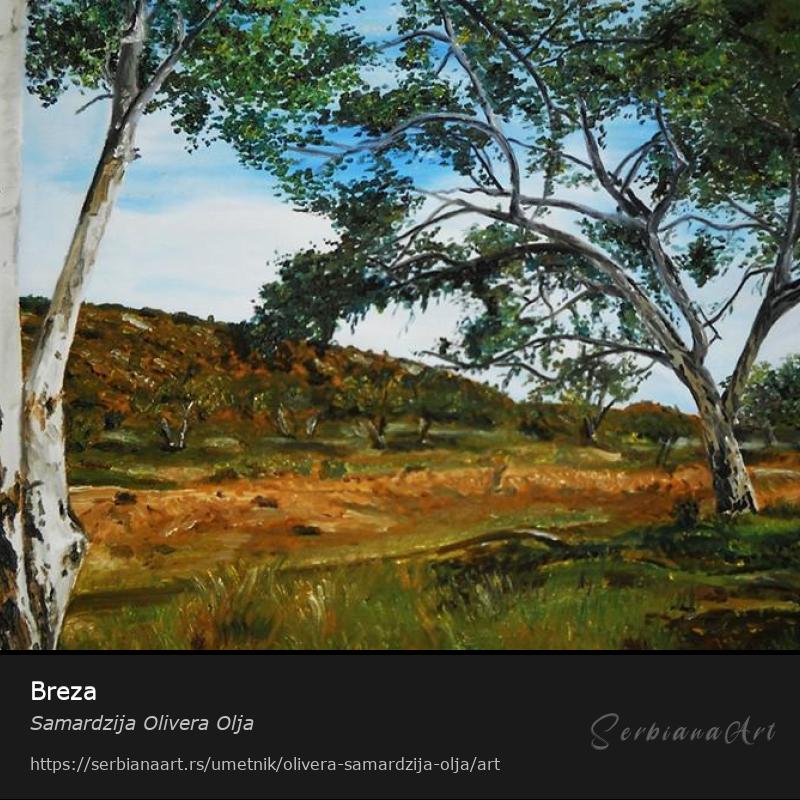 Zivim i radim u Novom Sadu. Studirala sam Gradjevinski fakultet, ali je slikanje oduvek bilo moj hobi, a aktivno slikam od 1995. godine. Imala sam tri samostalne izlozbe i ucestvovala sam na vise kolektivnih. Sve slike su radjene tehnikom ulje na platnu. Moje radove mozete videti na: olja-art.comSlike radim i po narudzbini, tako da mozete sami odabrati motiv i velicinu slike. Slike ne saljem u inostranstvo.Umetnik Samardzija Olivera Olja (Srbija).