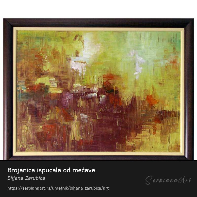 www.slika-ulje2005.comtel: +381(0)32 341 980GSM: +381(0)63 742 77 63Imam jednu vrstu sopstvene jasnoće i sreće koju sam samo ja mogla da prepoznam kod sebe. Za mene svako izgovoreno slovo i njime sklopljena reč ima određenu boju, ta boja nikad nije sama i nikad nije ista baš kao ni slovo u reči već se stalno međusobno prepliću, tako sam osetila da pored pisanog iskaza o nečemu to isto mogu da oslikam rukopisom boja i da se ta dva rukopisa slože i budu...