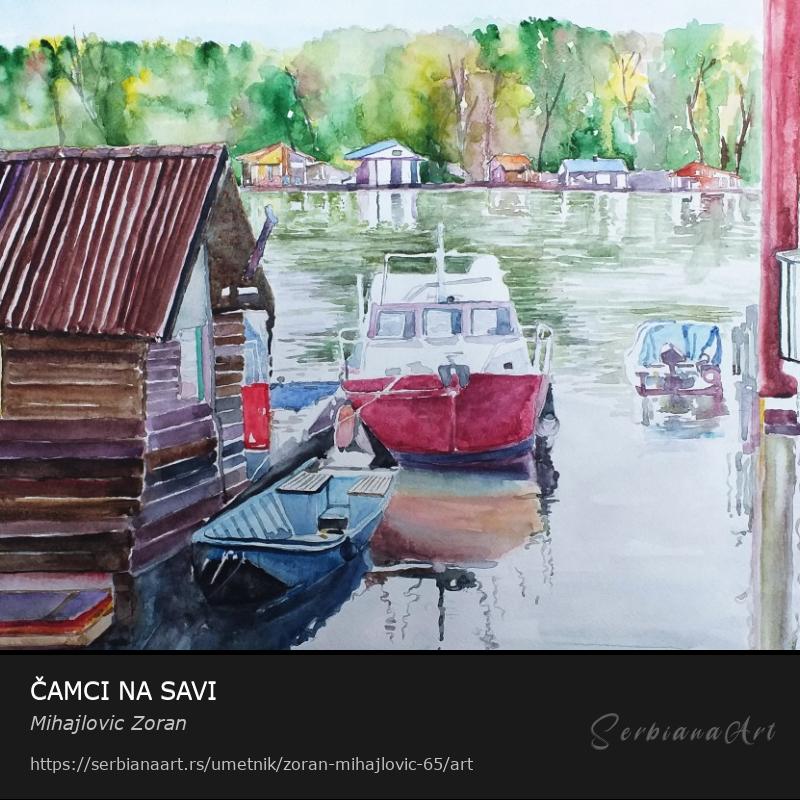 Čamci i splavovi su moja omiljena tema u slikarstvu.Ovo je akvarel motiv sa reke Save .