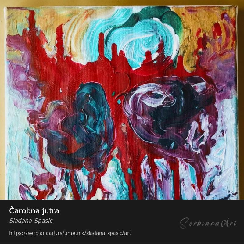 Volim galerije. Izložbe. Kreativnost autora. Sve što je vezano za autentičnost i iskrenost u izražavanju sebe. Moje slike nemaju opuse,svaka za sebe je posebna pričazato što ih radim u dahu, u naletu emocije i inspiracije i svaka odražava moje trenutno stanje, osećanje, viziju ili sećanje. Umetnik Slađana Spasić (Srbija).