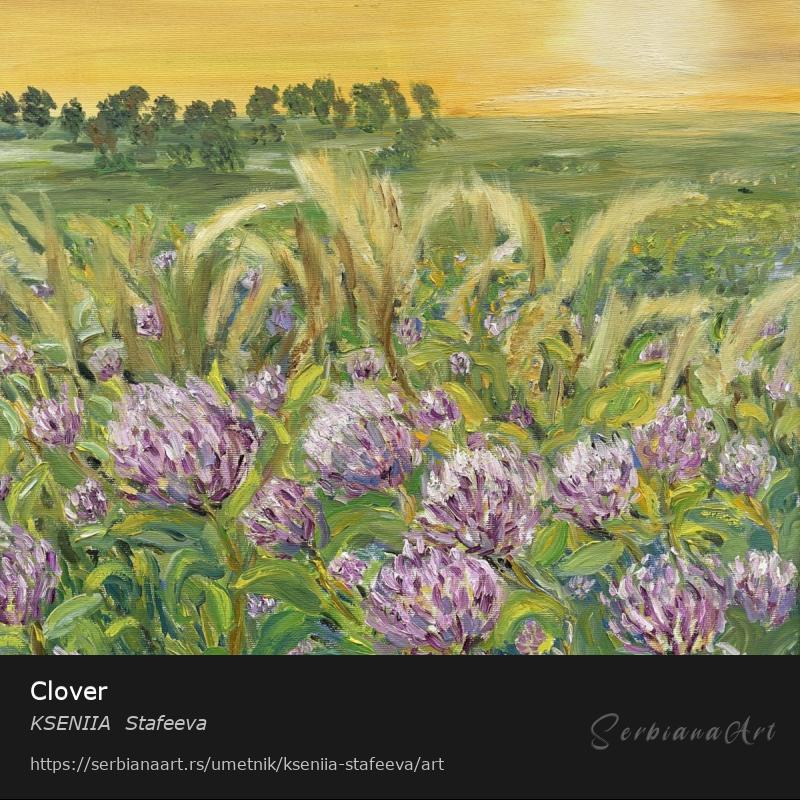 Najmekša biljka na livadi je detelina. Pronašavši malu livadu na periferiji, koja je bila potpuno prekrivena pahuljastim i mekim pokrivačem od deteline, rado sam slikao atmosferu livade na slici. Slika prenosi prostranost i istovremeno lepotu i nežnost ove divne biljke.
