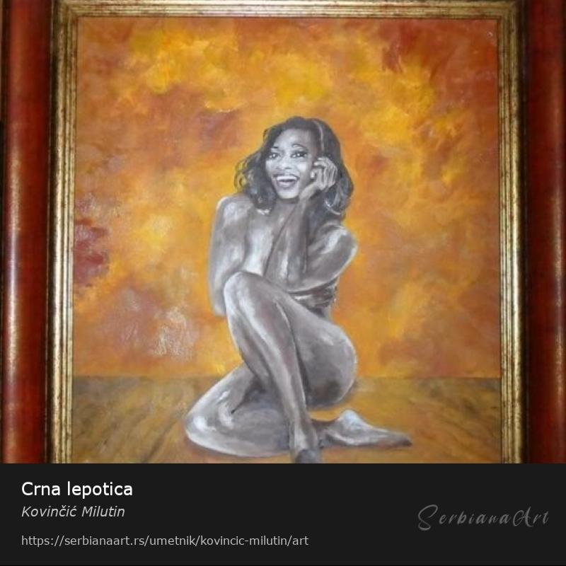 Slika ``Crna lepotica`` je ženski akt naslikan 2013. To je ulje na platnu dimenzija 40x50cm - uramljeno.Podelite i promovišite ovo delo