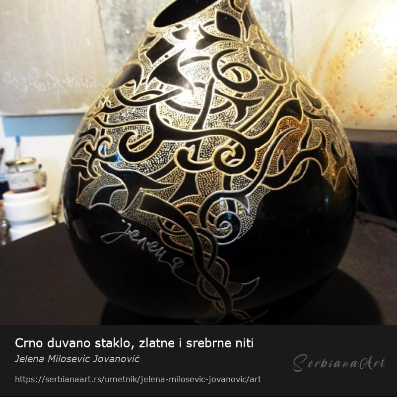 Crno duvano staklo, slikano rukom zlatnom i srebrnom nitiPodelite i promovišite ovo delo