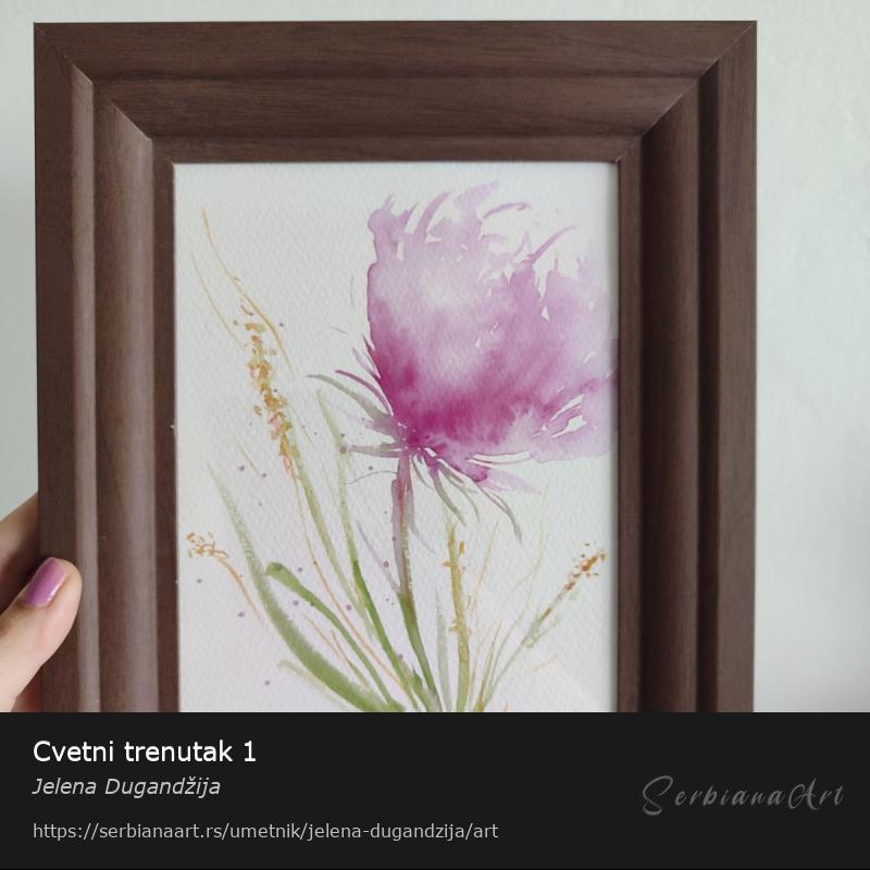 Akvarel je slikan na profesionalnom papiru, profesionalnim akvarel bojama. Veličina sa ramom je 22 X 27 cm. Ram je fabrički, sa pleksiglasom.