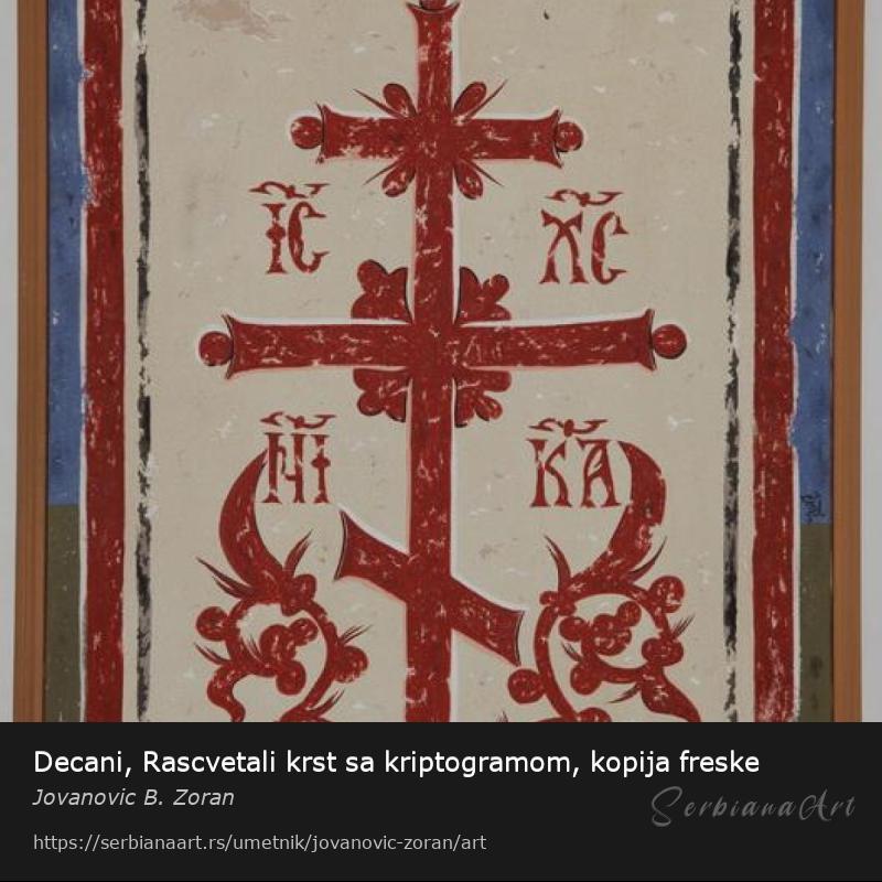 Manastir Dečani (1339-1347.god.), Rascvetali krst sa kriptogramom (Isus Hristos Nika...tj. pobeđuje), kopija freske. Slika je trenutno na prodaju.