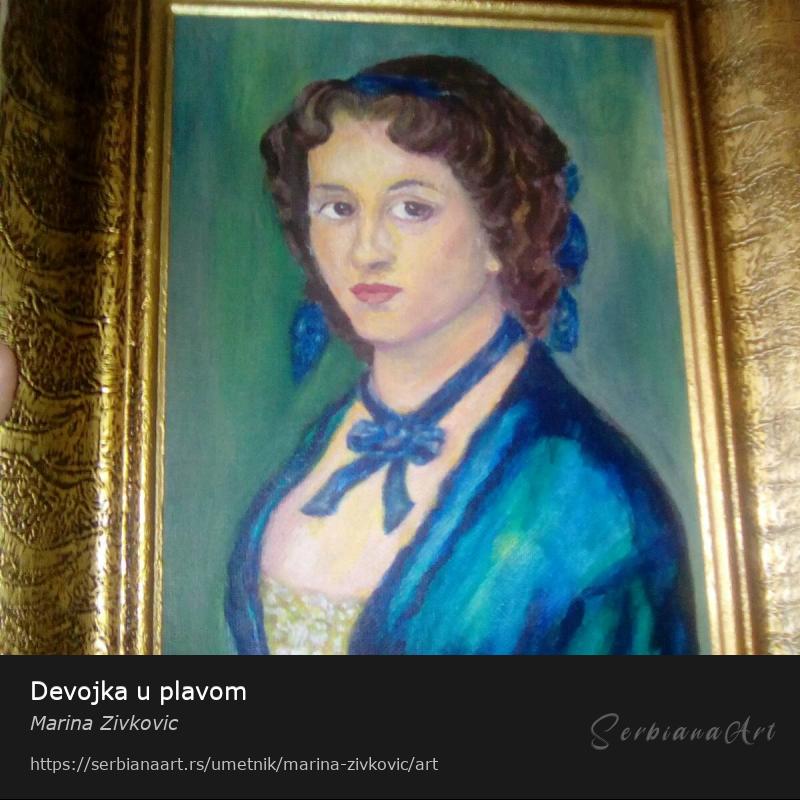Reprodukcija slike DJure Jaksica /devojka u plavom /radjena akril tehnikom na pltnu.