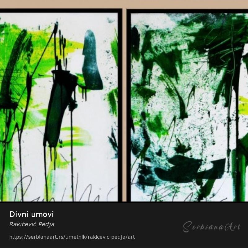Rearitet iz 2014. godine (jedina slika iz 2014. još uvek u vlasništvu autora) diptih WONDERFUL CEREBRUMS 90 x 180 (2 x 90 x 90) naslikan na platnu visokog kvaliteta i blind ramovima od suve čamovine širine 7 cm, akrilnim bojama Goya i uramljena oba dela diptiha zasebno u pro crni ram C48, 2cm širine i 4cm dubine, za velike zidove i prostor u kome želite ambient tako iznenadjujućeg motiva.Podelite i promovišite ovo delo
