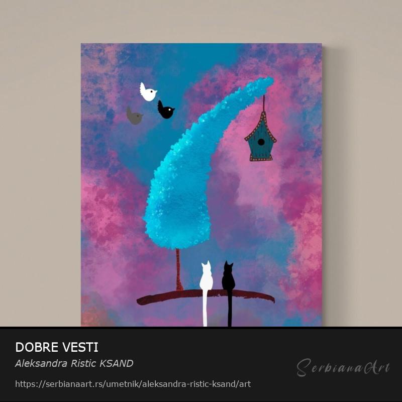 Kroz svoju živopisnu simboliku, "Dobre Vesti" odražava ravnotežu života, u kojem primamo i uzbudljive, neutralne i teške vesti, pozivajući na razmišljanje o otpornosti, optimizmu i stalnom toku poruka života. Savršeno za ljubitelje umetnosti koji cene lepotu u svim fazama života.