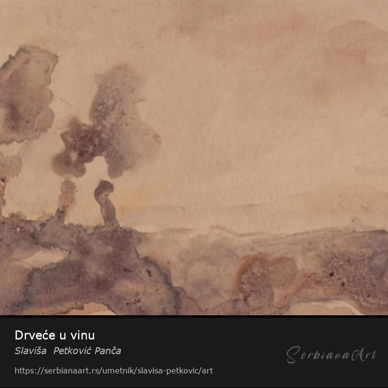 Slikano crnim vinom na papiru. Uramljeno, antirefleks staklo – dimenzije sa sa ramom 34,5 x 29,5 cm... 13.6 x 11.6 in