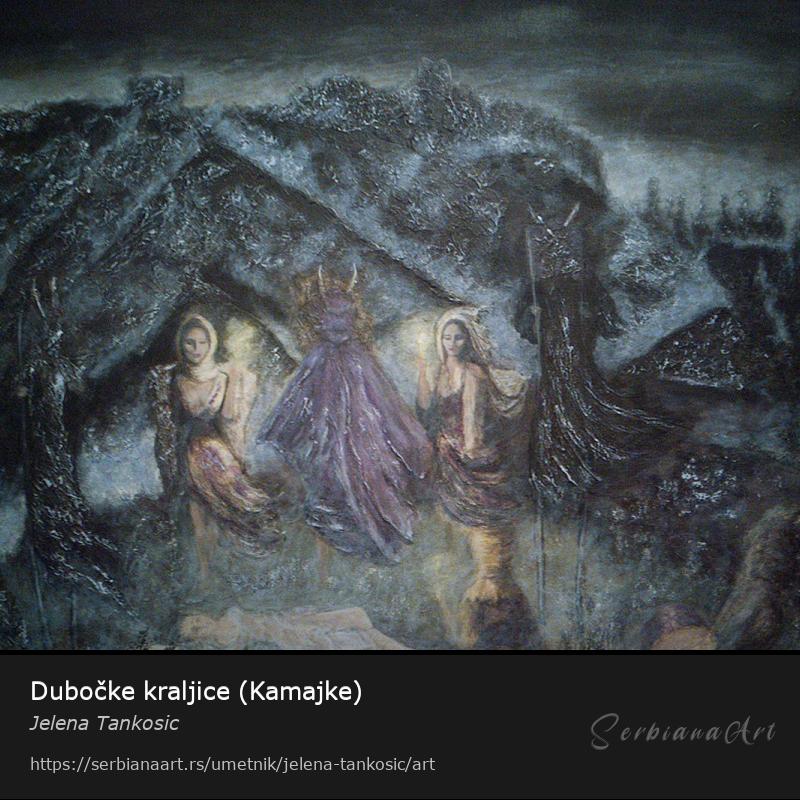 Serbian painter Jelena Tankosic`s works can be found in private collections worldwide. Tankosic works with acrylic on canvas, which she occasionally augments with a touch of oil. Tankosic`s first concern is texture- once she is satisfied with the textural balance, she composes the forms. Inspired by symbolism and mythology, Tankosic often paints scenes from matriarchal societies, as well as images from nature. Joyful and ornate, Tankosic`s pieces fuse abstract impressionism with realism in richly textured scenes.Umetnik Jelena Tankosic (Srbija).