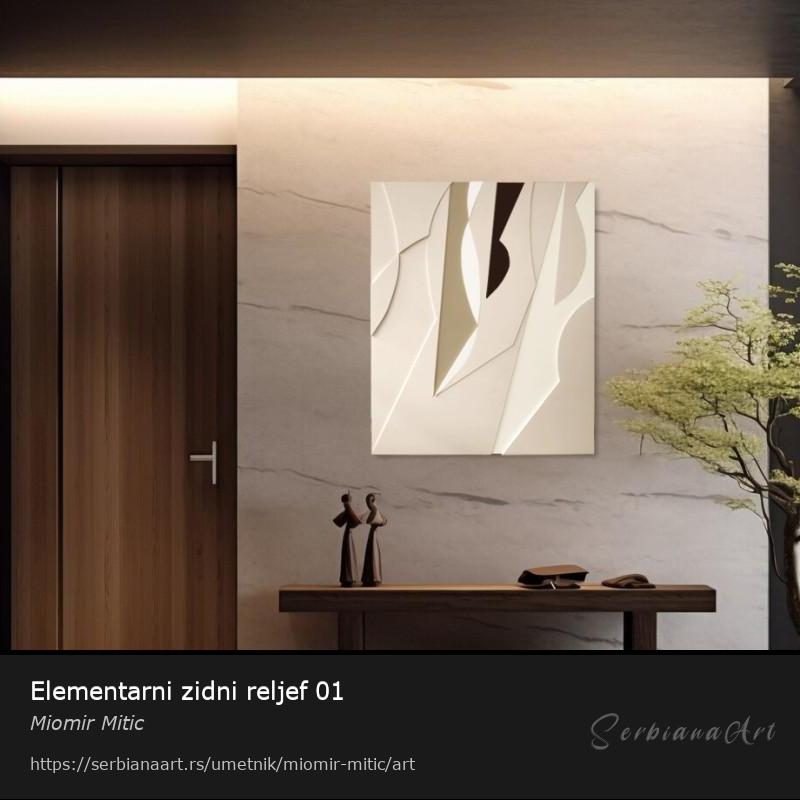 Зидни  рељеф  је састављен од елемената  различитих облика, величина и дебљина, на тај начин стварајући суптилне текстуре и замршене детаље који додају дубину и димензију уметничком делу. Тема, или идеја која ме је водила у стварању је   повезивање. Посебну драж дају сенке које се стварају због различитих висина , такође уколико је  изнад рељефа постављен посебан извор светлости то има посебан ефекат у  вечерњим сатима.  Материјал који је коришћен је Форекс Premium, чије су карактеристике мала тежина и изузетно глатка структура, флексибилност и отпорност на ватру. Иначе је то веома сложен процес и начин израде који захтева пуно пажње, концентрације и прецизности. Сваки рад се пажљиво планира и лепи на професионалном сликарском платну са дрвеним рамом. На крају су премази акрилним бојама и као заштита слој мат лака. У прилогу је неколико примера како рељеф изгледа у простору са различитим бојама, али бих напоменуо  да боје, а исто тако и димензије, могу да се мењају у зависности од ваших потреба.
