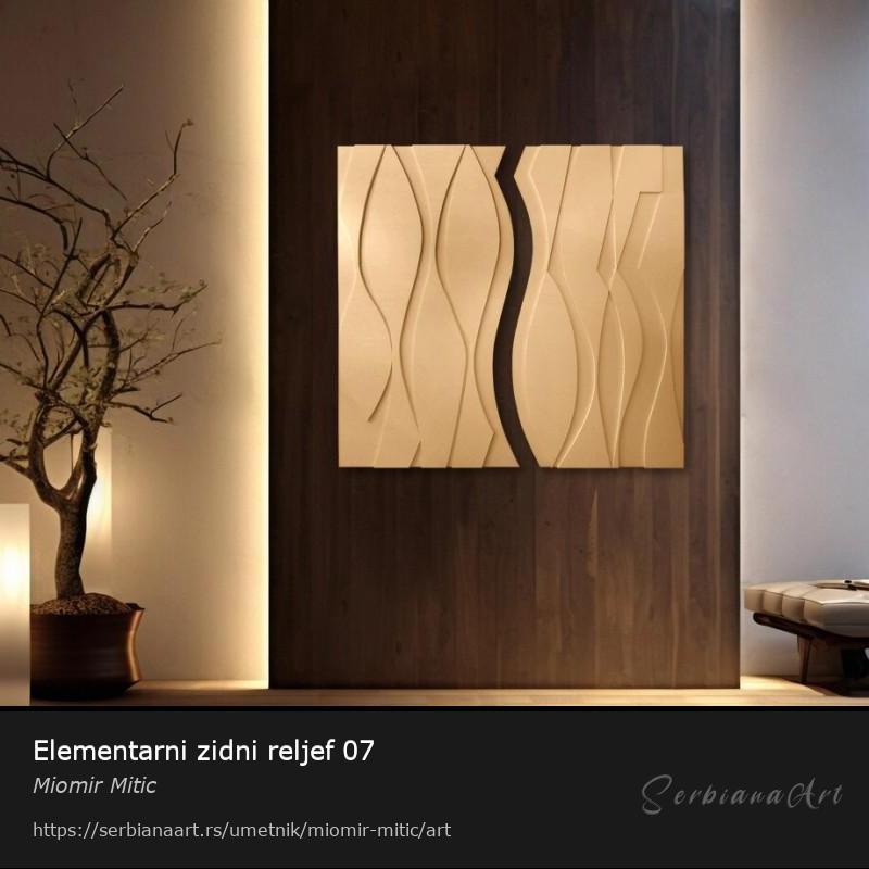 Зидни  рељеф  је састављен од елемената  различитих облика, величина и дебљина, на тај начин стварајући суптилне текстуре и замршене детаље који додају дубину и димензију уметничком делу. Тема, или идеја која ме је водила у стварању је   повезивање. Посебну драж дају сенке које се стварају због различитих висина , такође уколико је  изнад рељефа постављен посебан извор светлости то има посебан ефекат у  вечерњим сатима.  Материјал који је коришћен је Форекс Premium, чије су карактеристике мала тежина и изузетно глатка структура, флексибилност и отпорност на ватру. Иначе је то веома сложен процес и начин израде који захтева пуно пажње, концентрације и прецизности. Сваки рад се пажљиво планира и лепи на професионалном сликарском платну са дрвеним рамом. На крају су премази акрилним бојама и као заштита слој мат лака. У прилогу је неколико примера како рељеф изгледа у простору са различитим бојама, али бих напоменуо  да боје, а исто тако и димензије, могу да се мењају у зависности од ваших потреба.