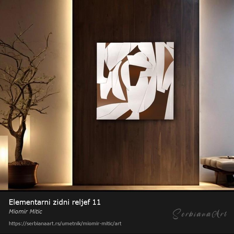 Зидни  рељеф  је састављен од елемената  различитих облика, величина и дебљина, на тај начин стварајући суптилне текстуре и замршене детаље који додају дубину и димензију уметничком делу. Тема, или идеја која ме је водила у стварању је   повезивање. Посебну драж дају сенке које се стварају због различитих висина , такође уколико је  изнад рељефа постављен посебан извор светлости то има посебан ефекат у  вечерњим сатима.  Материјал који је коришћен је Форекс Premium, чије су карактеристике мала тежина и изузетно глатка структура, флексибилност и отпорност на ватру. Иначе је то веома сложен процес и начин израде који захтева пуно пажње, концентрације и прецизности. Сваки рад се пажљиво планира и лепи на професионалном сликарском платну са дрвеним рамом. На крају су премази акрилним бојама и као заштита слој мат лака. У прилогу је неколико примера како рељеф изгледа у простору са различитим бојама, али бих напоменуо  да боје, а исто тако и димензије, могу да се мењају у зависности од ваших потреба.