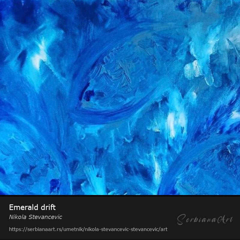Emerald Drift uvlači posmatrača u spokojno prostranstvo duboke plave vode, gde se tri ribe kreću u tihoj harmoniji ispod talasaste površine. Tečni potezi četkice i promenljive nijanse kobalta, mornarice i tirkizne boje hvataju nežni ritam vode, stvarajući osećaj smirenosti i bezvremenske tišine. Poetski spoj apstrakcije i prirode, ovaj komad dočarava mirnu lepotu života ispod talasa.
