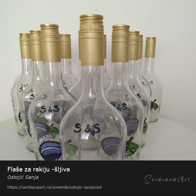 Poklon flaše. Ručno oslikane flaše akrilnim bojama za staklo marke Cadence. Aluminijumski čep 30x60mm-zlatni. Zapremina 0, 7lPodelite i promovišite ovo delo
