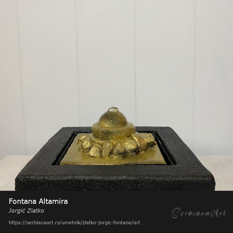 Fontana Altamira izrađena je od kvarcnog kamena i pripada grupi elegantnih feng shui fontana. Zvuk vode je harmoniča, tih i umirujući, voda se sliva niz figuru fontane u bazen. Fontanu možete po želji dekorisati ukrasnim kamenom koji slažete po ploči na kojoj se nalazi figura.