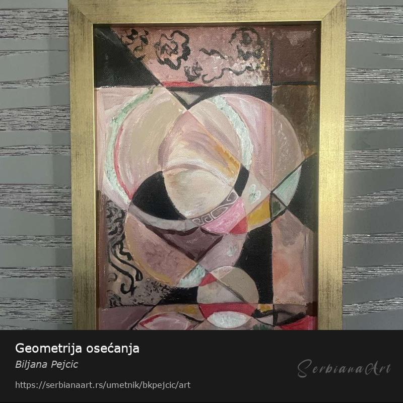 Slika prikazuje spoj apstraktnih oblika i linija koje simbolizuju ljudske emocije kroz precizne, ali dinamične geometrijske forme