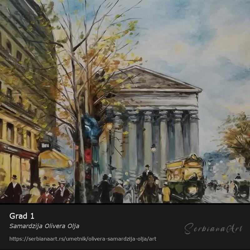Zivim i radim u Novom Sadu. Studirala sam Gradjevinski fakultet, ali je slikanje oduvek bilo moj hobi, a aktivno slikam od 1995. godine. Imala sam tri samostalne izlozbe i ucestvovala sam na vise kolektivnih. Sve slike su radjene tehnikom ulje na platnu. Moje radove mozete videti na: olja-art.comSlike radim i po narudzbini, tako da mozete sami odabrati motiv i velicinu slike. Slike ne saljem u inostranstvo.Umetnik Samardzija Olivera Olja (Srbija).