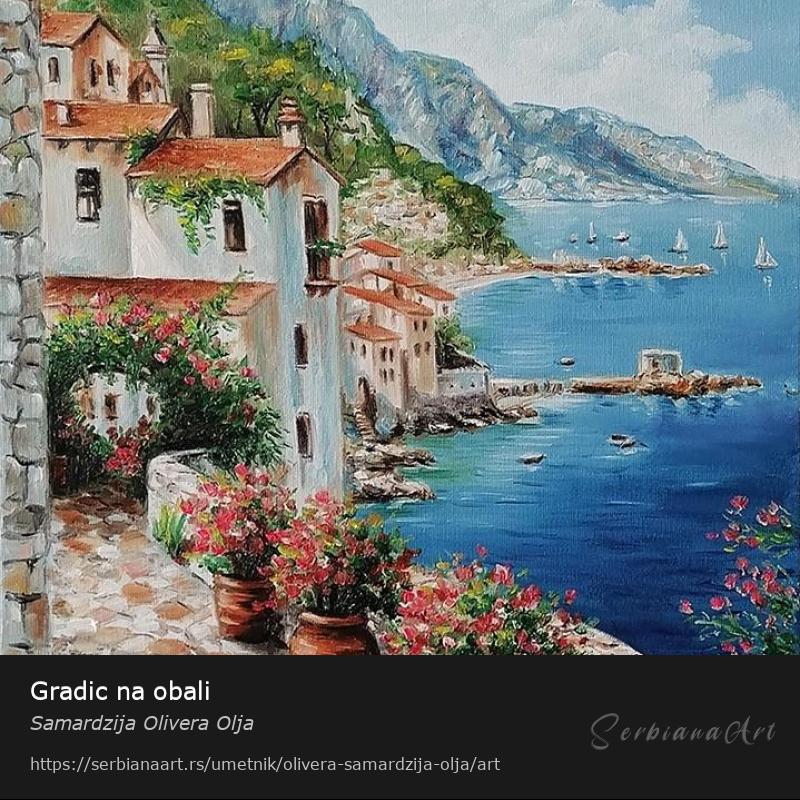 Zivim i radim u Novom Sadu. Studirala sam Gradjevinski fakultet, ali je slikanje oduvek bilo moj hobi, a aktivno slikam od 1995. godine. Imala sam tri samostalne izlozbe i ucestvovala sam na vise kolektivnih. Sve slike su radjene tehnikom ulje na platnu. Moje radove mozete videti na: olja-art.comSlike radim i po narudzbini, tako da mozete sami odabrati motiv i velicinu slike. Slike ne saljem u inostranstvo.Umetnik Samardzija Olivera Olja (Srbija).