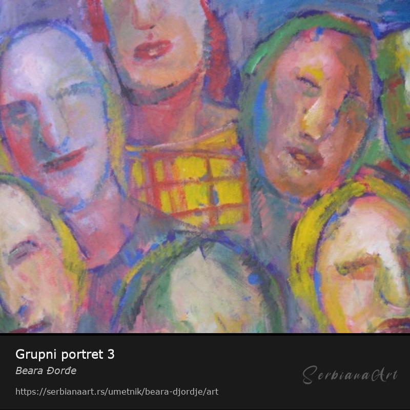 Slika na papiru, kombinovana tehnika akril-ulje. Tema je grupni portret. U ekspresionističkom stilu (nemački ekspresionizam).Podelite i promovišite ovo delo