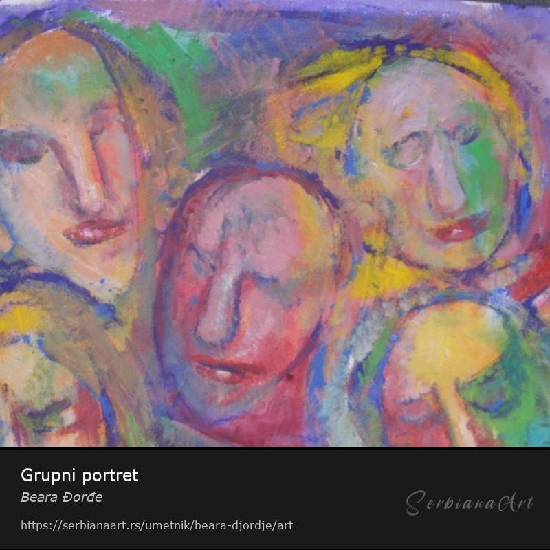 Slika na papiru, kombinovana tehnika akril-ulje. Tema je grupni portret. U ekspresionističkom stilu (nemački ekspresionizam).Podelite i promovišite ovo delo