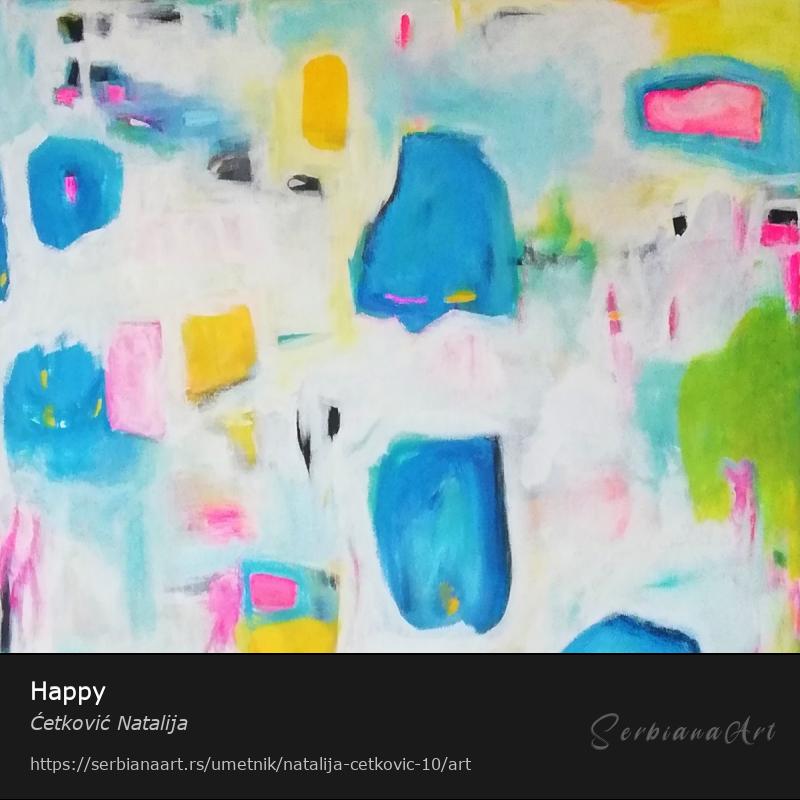 Apstraktna slika 100 x 100 cm na platnu na blind ramu. Rađena akrilnim bojama