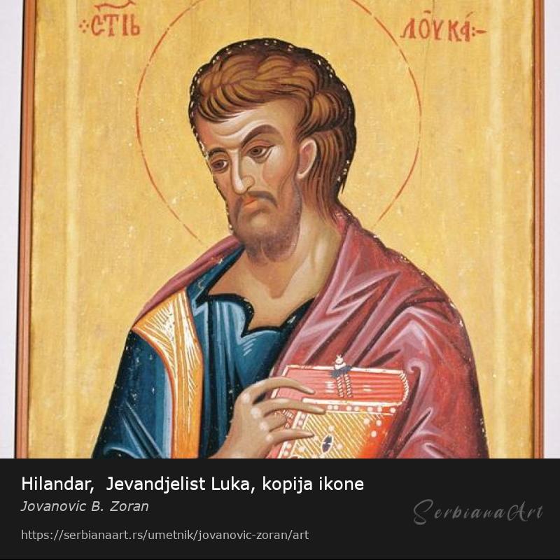 Manastir Hilandar, Sveti jevanđelist Luka, treća četvrtina XIV veka, kopija ikone ( izvedena na platnu oponašajući drvo). Ova kopija ikone je prodata, a rok za izradu iste je po dogovoru (oko 25-30 dana).
