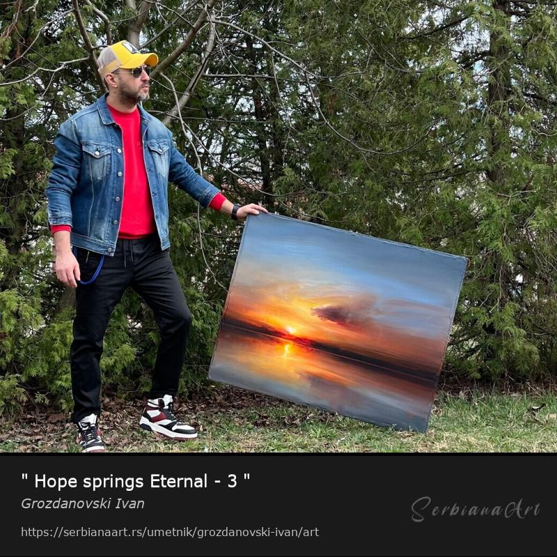 " Hope springs Eternal - 3 "....Painted with expressive moves.......with pallet knife and with a brush.....W 100 x H 80 cm ,( W 97 x H 77 cm ,when the canvas is stretched on the wooden frame )....