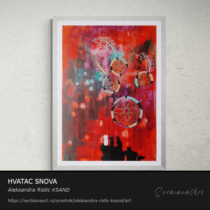 "Hvatač snova" akrilna slika sa crnom i belom mačkom, uz veliki "Hvatač snova" dizajniran da uhvati sve njihove želje i manifestuje ih. On je čuvar sudbine, simbolizujući verovanje da drži niti njihove budućnosti. "Hvatač snova", sa svojom složenom mrežom, predstavlja način na koji se snovi, nade i želje upliću u tkanje života, štiteći i vodeći pojedinca ka njegovom pravom putu. On služi kao podsetnik da je budućnost oblikovana onim što biramo da manifestujemo, i da su naši snovi snažne sile koje oblikuju našu sudbinu.