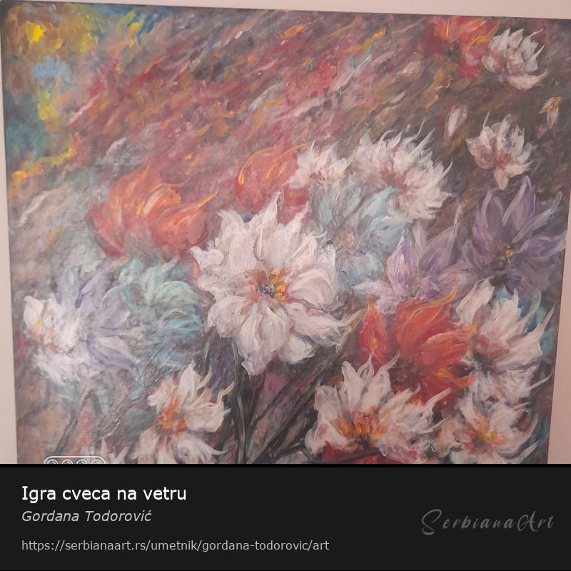 Prelepa i originalna rucno radjena slika sa razigranim tonovima i sirokim platnom.Izlagana na izlozbi u St.Petersu u SAD i osvojila drugu nagradu.Kontakt telefonom +!38163344752 ili iml:gordana.todorovic47@gmail.com.