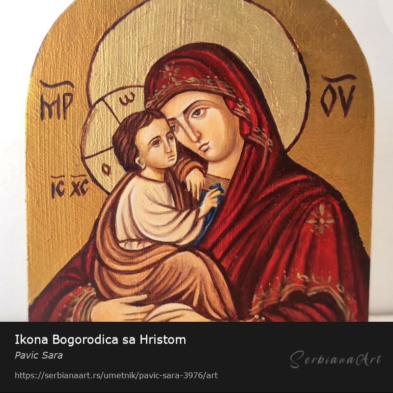 Ikona Bogorodice sa Hristom, tehnika ulja sa pozlatom na dasci.